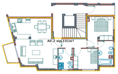 Kati i tretë dhe i dytë, apartamenti 2 varianti i parë |
